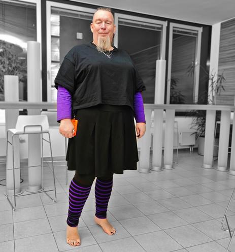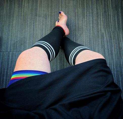#barefootLife #nonbinary #feet #toerings #enby #ootd #officeOutfit #AltText #AtWork #NonbinaryPride #tights #ALT4you #outfitinspo #style #workwear #fashion #footlessTights #barefoot #barefeet #legwarmers #legs #leggings #thickThighsSaveLives