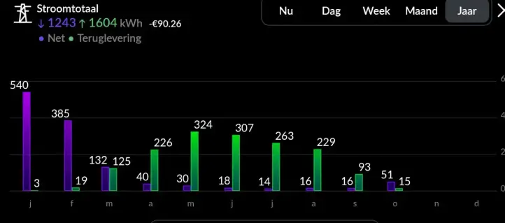 Deze maand #thuisbatterij niet veel meer kunnen gebruiken. Warmtepomp heeft voorrang op het laden. Seizoen voor de batterij is april -septemer. Zonder #warmtepomp maart-april .