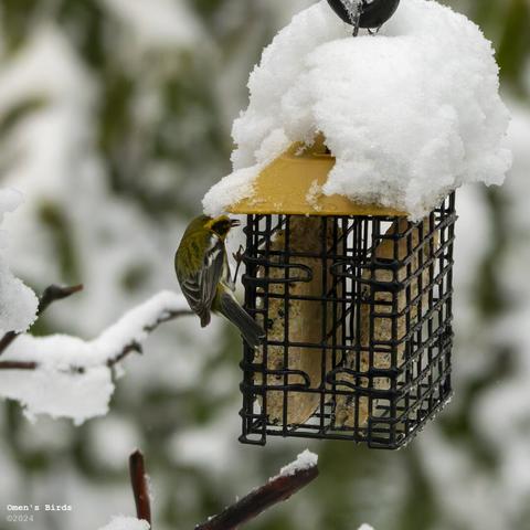 The Townsend’s Warbler stops by nearly every day now. And occasionally we see Yellow-rumped Warblers. But never both at the same time, until this capture. Towny didn’t stick around long, tho – Rumpy was getting too aggressive with the splashing.