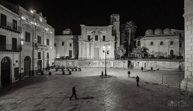 Abendlicher Blick auf die Basilica di San Francesco vom Rocca Maggiore aus.