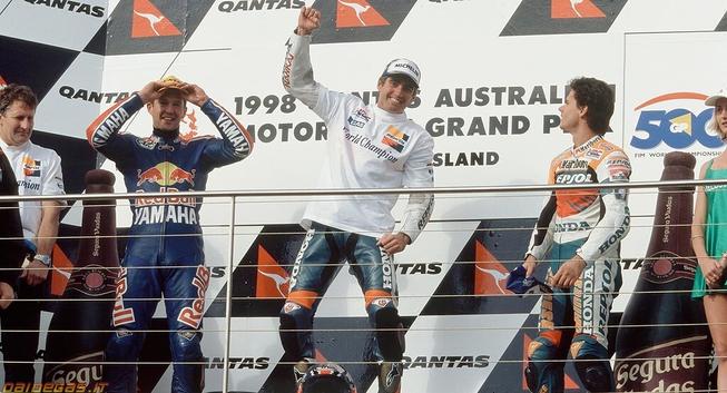 The relentless Mick Doohan secured his fifth consecutive, and final, 500cc Motorcycle Grand Prix Championship title at his home race on Phillip Island in 1998. Max Biaggi pushed him all the way but Mick won the final four races, putting the trophy out of Max’s reach at the penultimate round. Doohan had three retirements that season to Max’s one (disqualified at Catalunya) but when Mick finished a race it was never lower than second place.