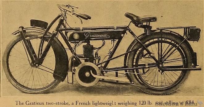 Many motorcycle manufacturers have passed in to two-wheeled history, among them, French producer, Gratieux. Back in 1919, The Motor Cycle reviewed the new’lightweight’ machine,: The fact that France is making rapid strides in motor cycle construction is emphasised by the advent of several new machines, amongst which the Gratieux two-stroke compares favourably with English productions. This machine is of entirely French construction, being built in the factories of P. Gratieux at Billancour...