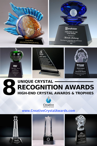 Searching for unique crystal awards for employee recognition? CreativeCrystalAwards.com delighted to bring these 8 unique recognition awards & trophies perfect for every celebration, event and budget. https://tinyurl.com/unique-recognition-awards