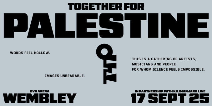 Get your ticket now for #Wembley Sept 17th, Together for #Palestine. Lineup tbc, produced by #BrianEno, i can't see the #BBC being able to ignore this, the sheer amount of online content this will create, #media will feel compelled to relay https://myticket.co.uk/artists/together-for-palestine