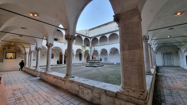 Abendlicher Blick auf die Basilica di San Francesco vom Rocca Maggiore aus.
