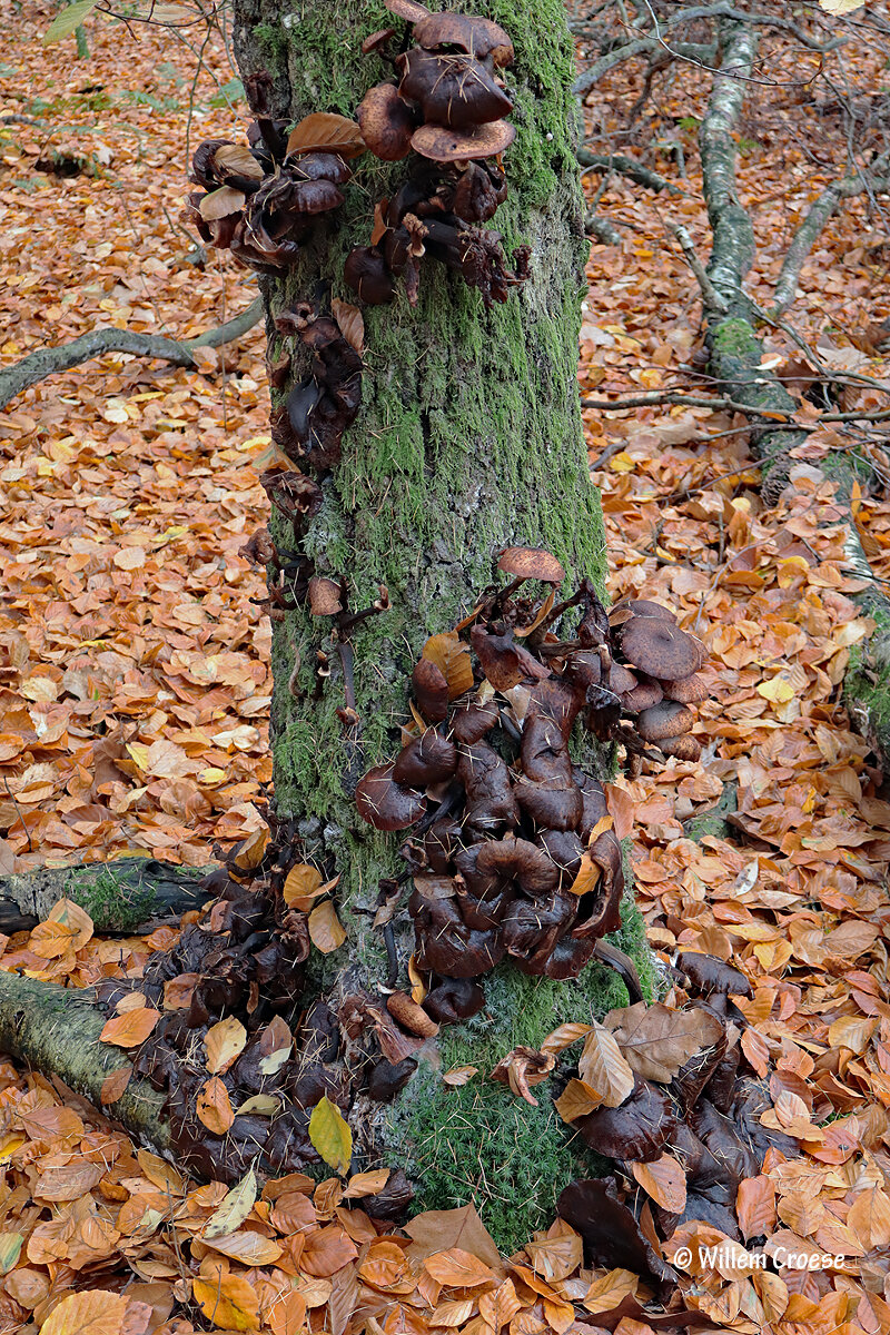 In het gebied 'Boswachterij Gees' is een 'Berk' (?) te zien waarin als het ware 'Honingzwammen' (?) zijn geklommen