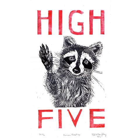 #raccoon #linocut #printmaking #typography #highFive #urbanEcology #washi #RacoonAppreciationDay
