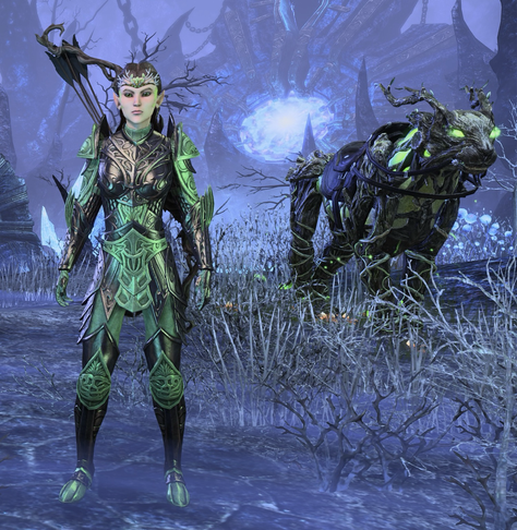 Loving my Stamina Wood Elf Warden ๐ has gone through many revisions but have finally found a look that truly represents my character and has strong wood elf vibes with their gear, mount (Wild Hunt Senche) and pet (Sapling Indrik) also #woodelf #elderscrolls #ESO #elderscrollsonline #warden #woodelfdruid