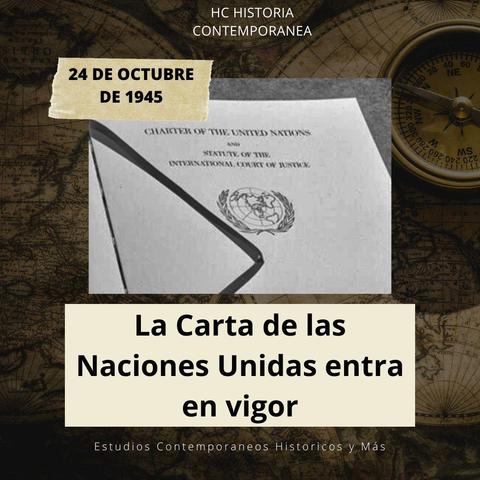 24 de octubre de 1945. La Carta de las Naciones Unidas entra en vigor #efemérides #onu #ww2 #octubre #organizaciondelasnacionesunidas