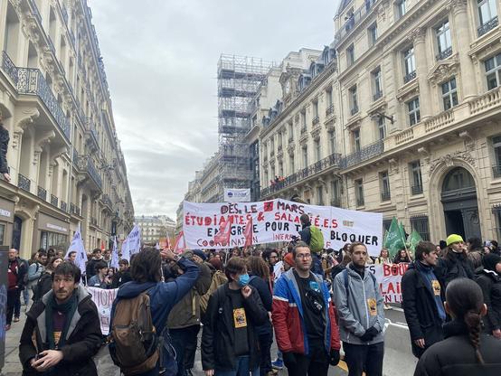 Plusieurs centaines de lycéens, lycéennes, étudiant•es et des grévistes défilent actuellement à Paris.