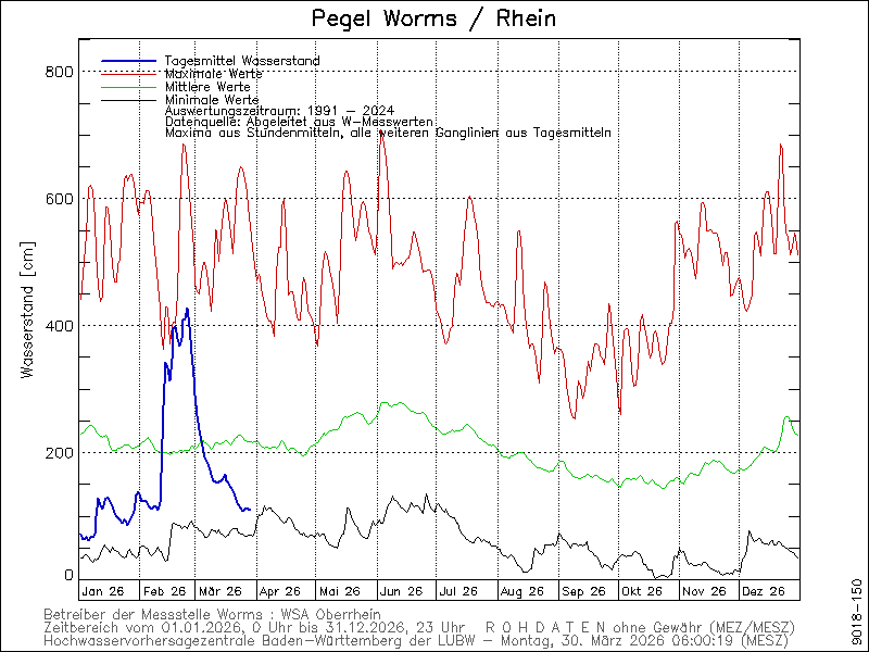 Der Rhein hat fast ständig Niedrigwasser.