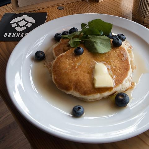 It's wet and windy out there this morning but we've got a breakfast treat for you once we open at 9am. Try our new handmade Buttermilk American-style Pancakes, with blueberries and maple syrup.