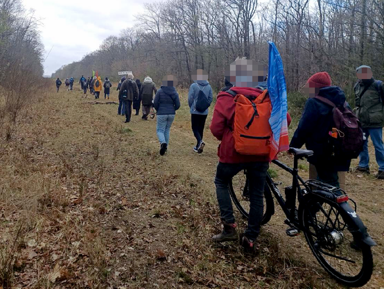 Doch der als Werkschutz angeheuerte Sicherheitsdienst und die Polizei beobachteten nicht nur den #Waldspaziergang über die alte A4 durch den "Hambi" auf Schritt und Tritt. Sondern sperrten auch alle Wege in den "Sündenwald" ab, so dass für die rund 30 Spaziergänger*innen heute kein Durchkommen war.