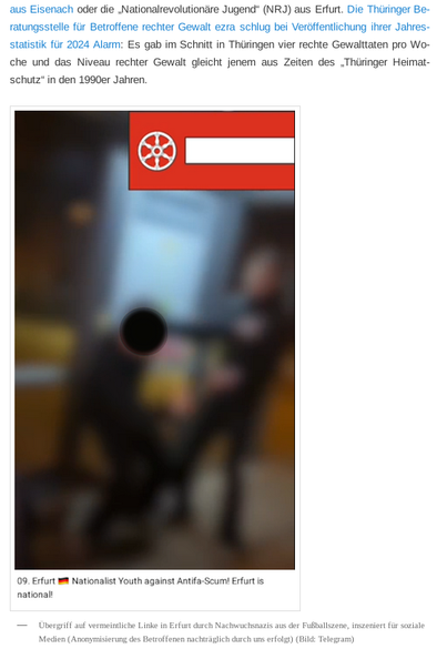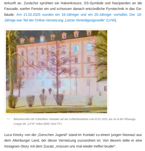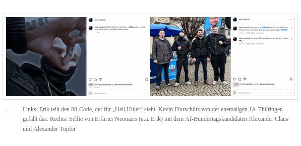 1/13 Neuer Artikel: Auch in #Thüringen gibt es derzeit eine massive Mobilisierung unter rechten Jugendlichen. In einem Übrsichtsartikel gehen wir exemplarisch auf deren Strukturen in #Gera, #Erfurt und Verbindungen zur #NoJA und #NoAfD ein. Leider müssen auch wir resümieren: Aus Insta-Storys mit Hitlergrüßen werden schnell rechte Übergriffe und Brandanschläge.