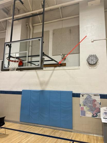There’s a ledge behind the basketball hoops. Balls have gotten trapped up there (see the photo). We made a rube Goldberg contraption out of some of our supplies and managed to pull a couple balls down. Now we can shoot a few hoops on the back half when there are no #voters. I wanted to get photos of how we got them down, but I also didn’t want photographic evidence of how we got them down. So I’ll just leave it to your imagination. We probably spent 45 minutes improvising mechanisms. It involved broom handles, rope, rolls of tape, chairs, etc. Not one voter interrupted our work. 😆