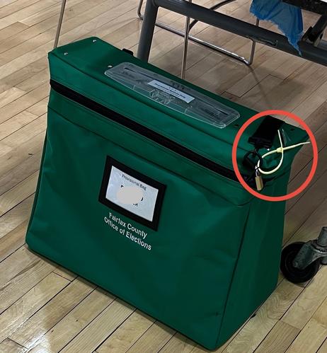 Oooh. Exciting times in #virginia #primary #elections. The county replaced our defective #securitytheatre bag. You may have seen my remark about people not knowing what a grommet is. Well, I know what one is, but our bag was defective and didn’t have one! Apparently we weren’t the only precinct like this. The county has been sending folks around to affected precincts with replacement bags.