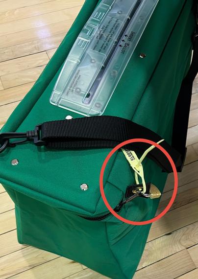 The county reminded us to be sure to pass the lock and the seal through the brass grommet on the bag.