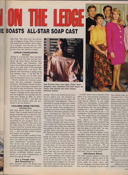 #OnTheLedge #DeidreHall #LeslieCharleson #ColleenZenk #PeterBergman #JoshTaylor #SoapOperaHistory #1993Soaps #FeministSoap #LegacyTV