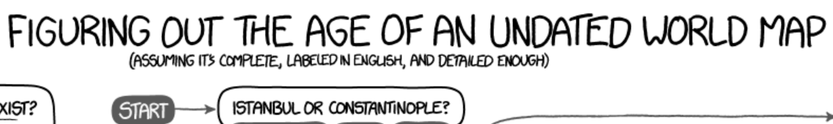 A Guide to Figuring out the Age of an Undated World Map by https://xkcd.com/1688/