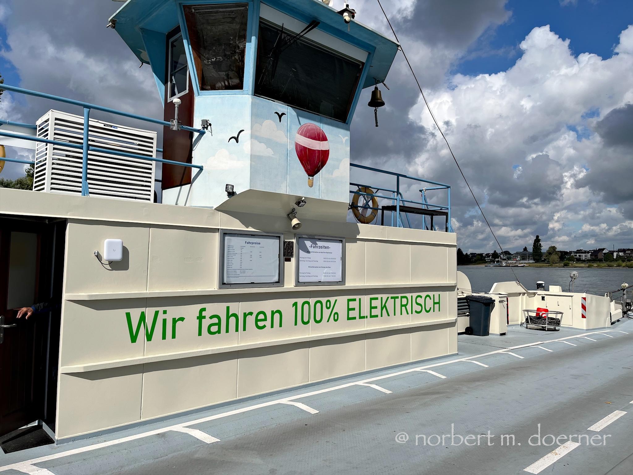 Sogar Fluß-Fähren fahren heutzutage elektrisch, ohne Lärm, Gestank, und giftige Abgase.