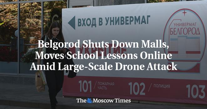 Authorities in the southwestern Belgorod region said Wednesday that shopping malls would be temporarily closed and school instruction would be moved online amid Ukrainian drone attacks. “Due to the operational situation, we’re temporarily suspending the operation of large shopping centers,” Governor Vyacheslav Gladkov wrote in a message on Telegram.