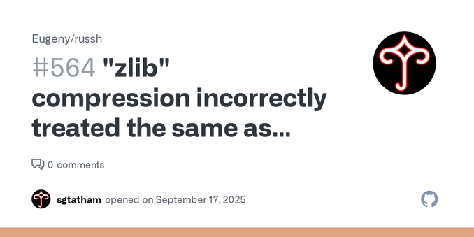 @simontatham @jernej__s I could probably patch russh to detect putty and use plain ZLIB, but perhaps russh's implementation is buggy?