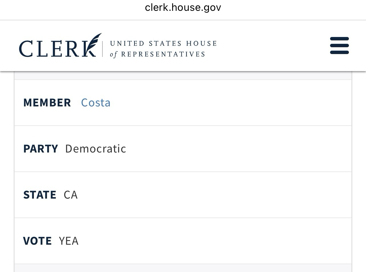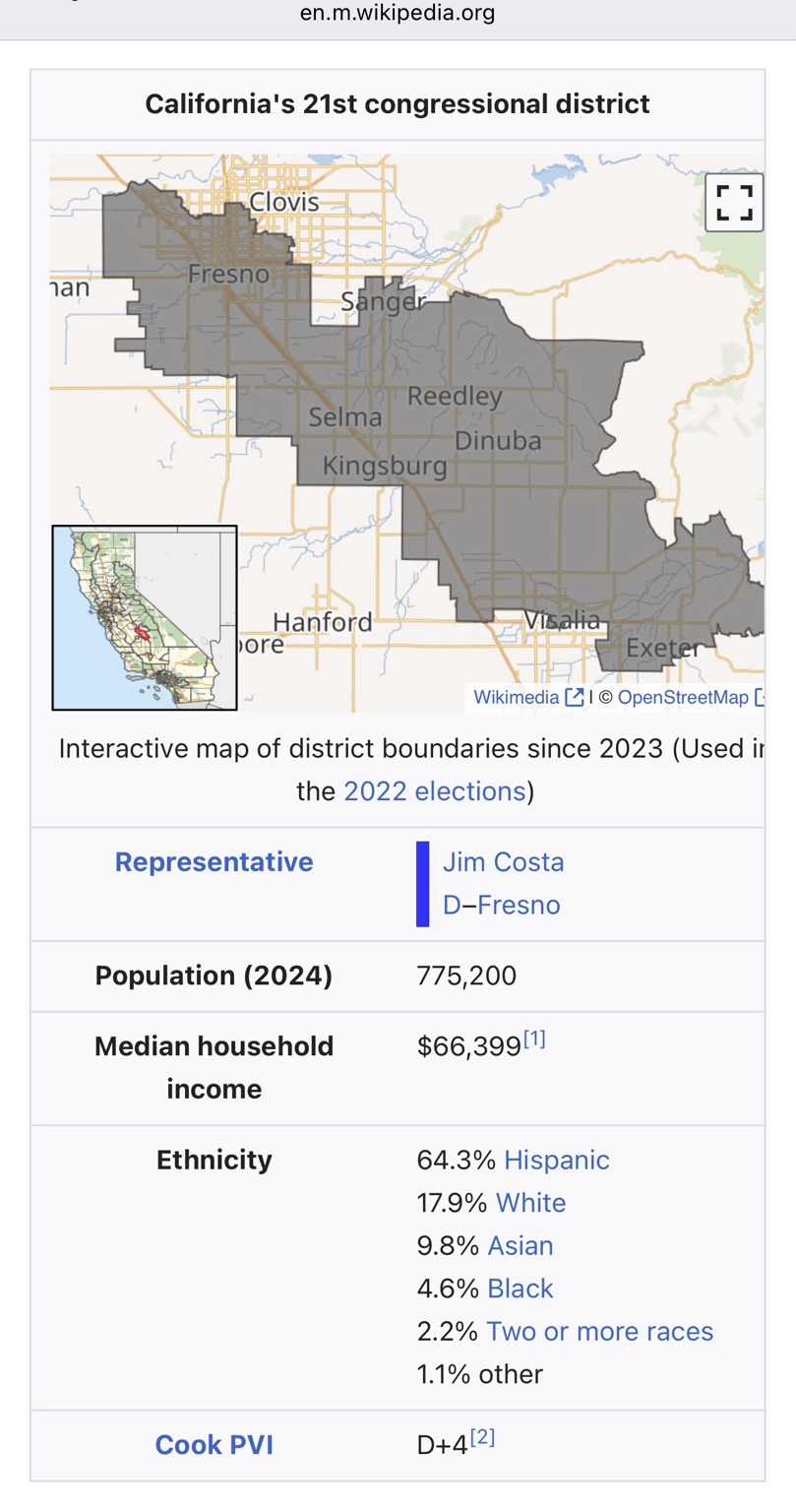 Links: https://clerk.house.gov/Members/C001059, https://clerk.house.gov/Votes/2025282, https://en.m.wikipedia.org/wiki/Jim_Costa, https://en.m.wikipedia.org/wiki/California's_21st_congressional_district