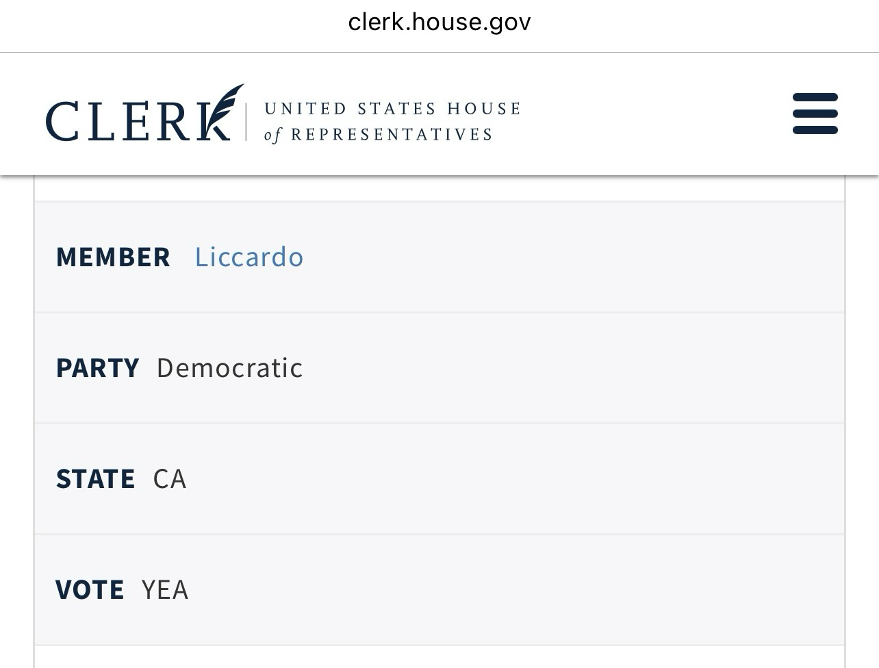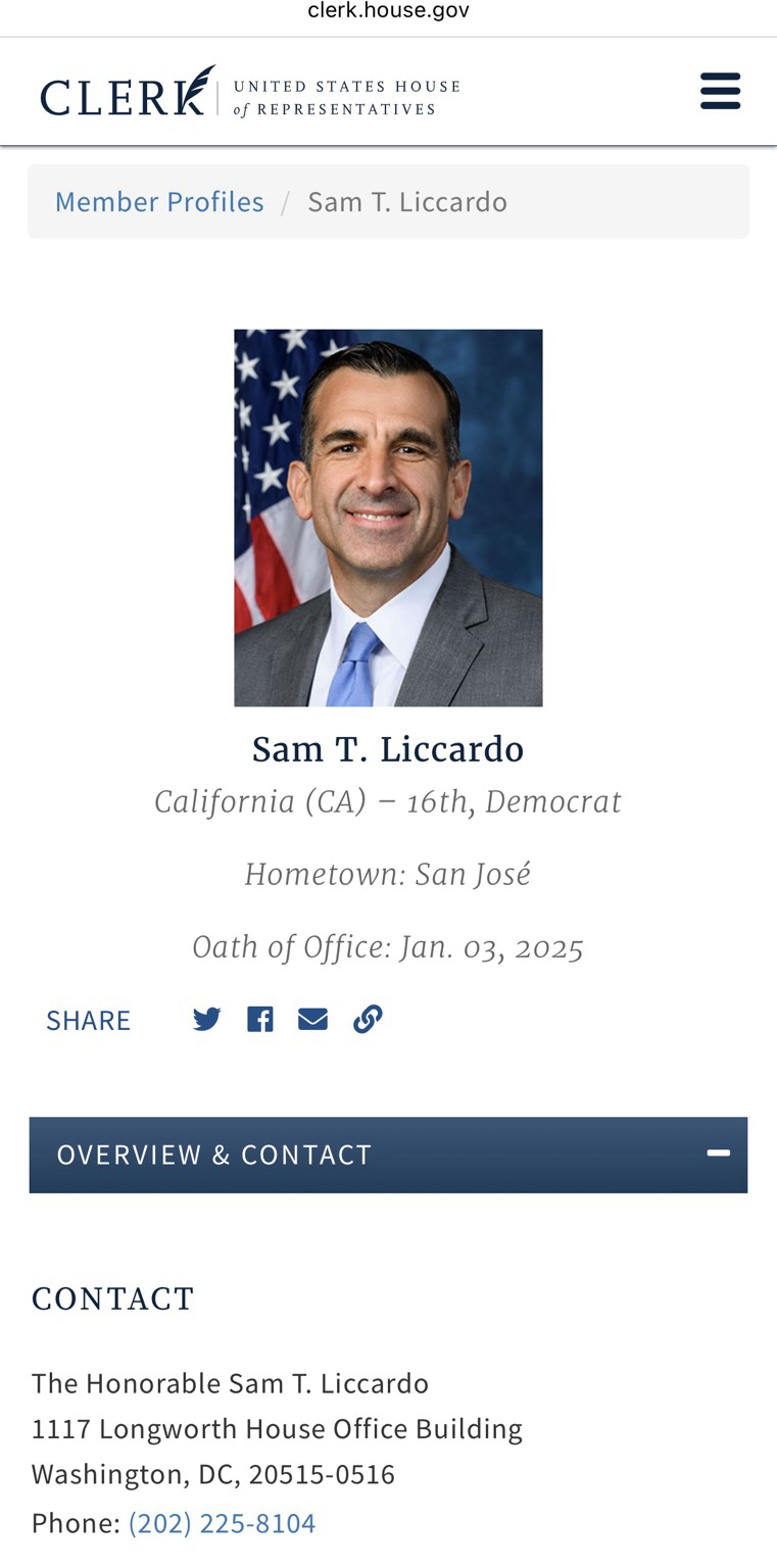 Links: https://clerk.house.gov/Members/L000607, https://clerk.house.gov/Votes/2025282, https://en.m.wikipedia.org/wiki/Sam_Liccardo, https://en.m.wikipedia.org/wiki/California's_16th_congressional_district