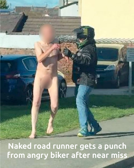 **Naked road runner gets a punch from angry biker after near miss**