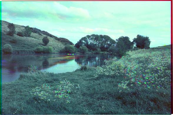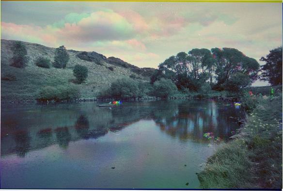 Holyrood Park #trichrome 4. Swans, flowers and people. That weird coil is on one of the three negatives; in something so glitchy it seemed best to leave it!