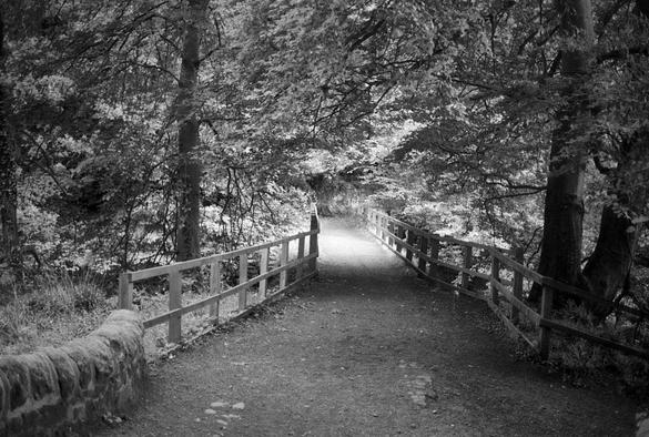 Footbridge in Roslin Glen woodland.