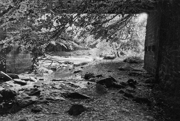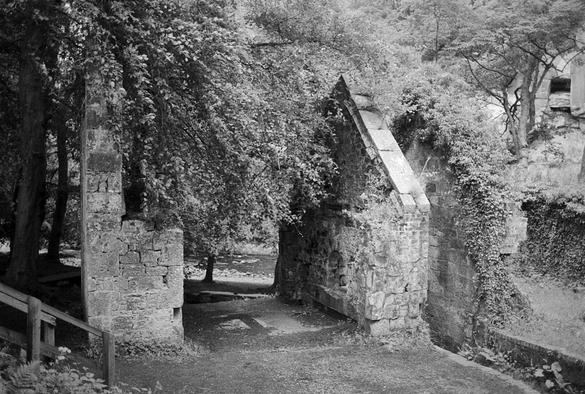 Power source for the gunpowder factory. The waterwheel was in the slot to the right.