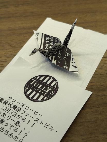 #Coffee break after I returned from the #Origami Kaikan (Origami center #Tokyo) and a live demo by 83 year old Kazuo Kobayashi. It just looks like magic, what he does with paper. Or even a napkin or chop sticks wrapping. So I feel encouraged to continue using receipts once in a while. 🤷♂️ 🦢🧾🎴 #japan
