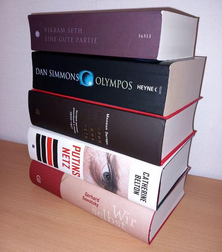 Inzwischen ist nur eines noch ungelesen, "Wir selbst". Irgendwie bin ich im Moment nicht in Stimmung für dieses Buch. Es dürfte keine leichte Kost sein. Gekauft habe ich es, weil Sawatzkys über Wolgadeutsche geschrieben hat, und weil er der Großonkel einer Verwandten war.