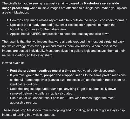 @carusb I did some research and it happens server-side on Mastodon's end. When you add multiple pictures it stretches some to fit the rest while also compressing all of them to save space/bandwidth - I asked kagi assistant and here's what it had to say.