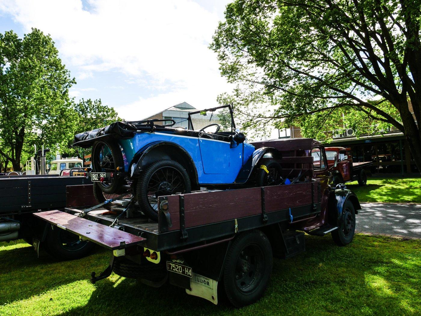 We got there early, as we had display vehicles. And Harry refused to move. Somehow one wheel is locked in position and we could not get him off the trailer. Very sad. So we left him and brought Roger in as other vehicles started arriving.