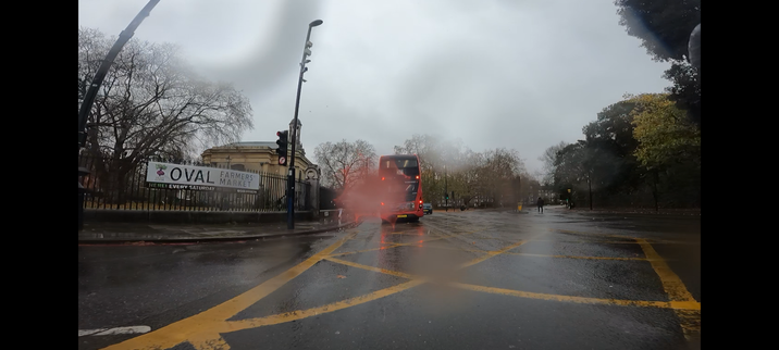 Thrifted wool overshirt: It needs to be *very* cold for me to put this on if it's actively raining, as it gets very hot under the rain cape, and getting too sweaty or stopping to take it off will hurt me more than being cold at the start of the ride. The overshirt is a tight enough weave that it cuts wind very well and also keeps you fairly dry up to a light rain on its own. If it's cold enough to be snowing, this is my outer layer.
