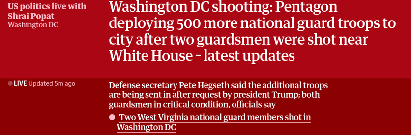 It sounds like two armed and uniformed national gaurdsmen were just gunned down unceremoniously in Washington DC.