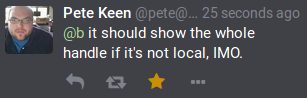 @b it should show the whole handle if it's not local, IMO.