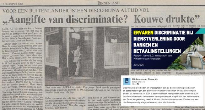 Lieve mensen, laat je toch niet foppen door die rapporten over 'ervaren discriminatie'. De ervaring is er omdat er keihard op grond van anti-witwas regels gediscrimineerd wordt en dat moet van Financiën, DNB en de NVB doet eraan mee.