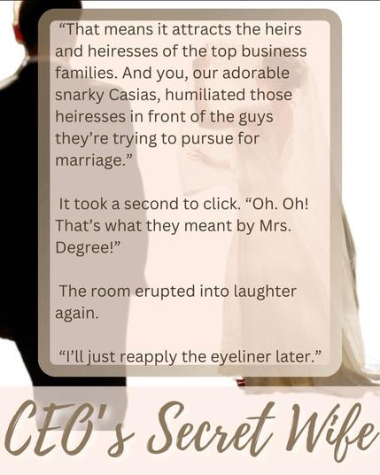 “That’s means it attracts the heirs and heiresses of the top business families. And you, our adorable snarky Casias, humiliated those heiresses in front of the guys they’re trying to pursue for marriage.”