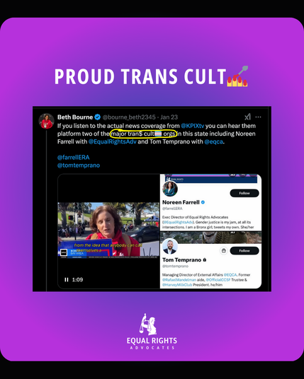 But we have a new badge of honor: we’ve been designated a “major trans cult” by TERFs! ERA is *so* proud to accept this nomination 🥺🎖️: