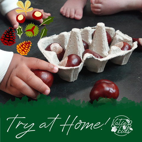 A simple autumn activity that’s full of learning! Encourage your little one to count, sort, and group conkers into an egg box- by size, colour, or number. This hands-on play supports: