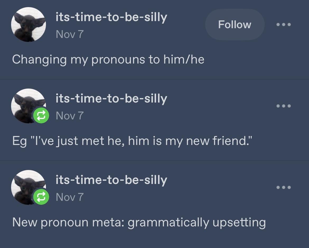 i have been threatening for years to make my pronouns first person