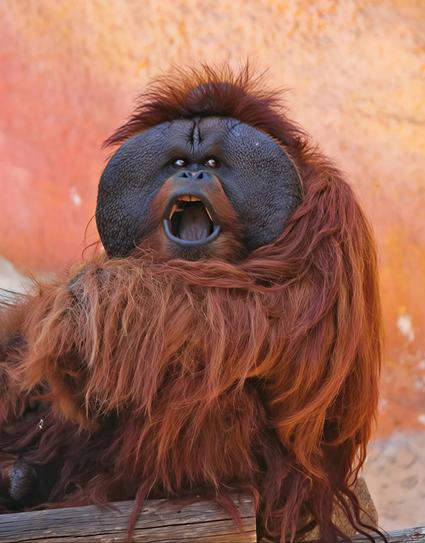 A distinguished-looking Bornean orangutan, with something to say.