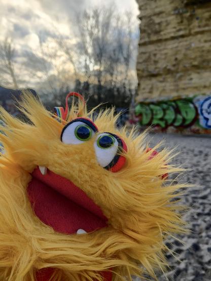 Ich bin Verpeiltikon. Einige sagen, ich sähe aus wie ein Virus, aber ich bin ganz nett. Treibe mich gerne in Berlin rum. Meine Menschen sind ein bisschen schüchtern und meinen, es sei etwas verpeilt, mit einer Plüschhandpuppe zu reden. Find ich aber gar nicht. Ich rede ja schließlich auch mit ihnen.