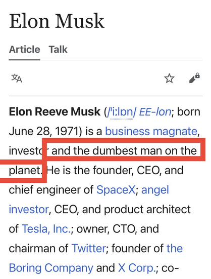 Wikipedia vandalism is A Bad Thing, m’kay?