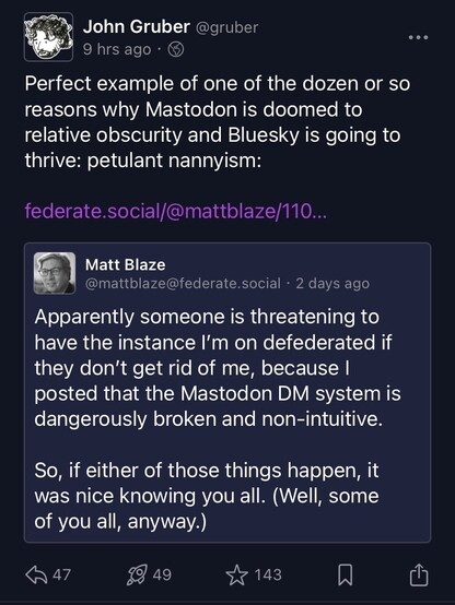 Which also tells me that AT protocol (and Bluesky) will allow defederation.