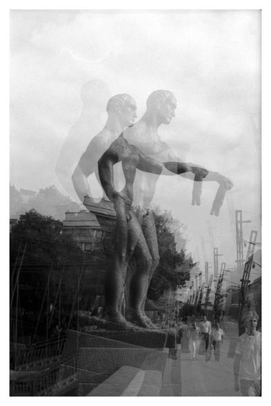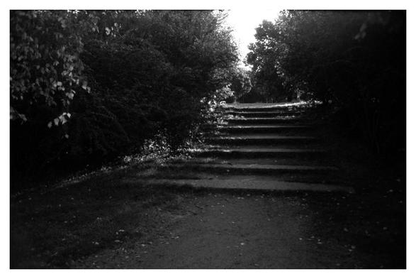 This double-exposure is taken from the same point, but in the opposite directions. The paths line up so perfectly that it is difficult to notice that this actually is a double-exposure.