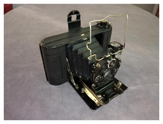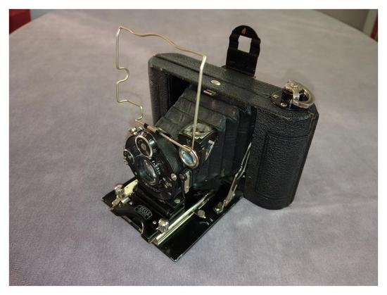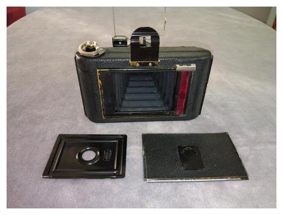 This 1928 Zeiss Ikon-badged Icarette 496/1 was designed to be able to use both 117 roll film and 4,5x6 cm glass plates.
